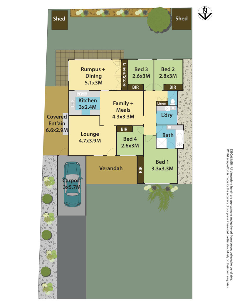 ~ Beautiful landscaped backyard with low maintenance and garden shed