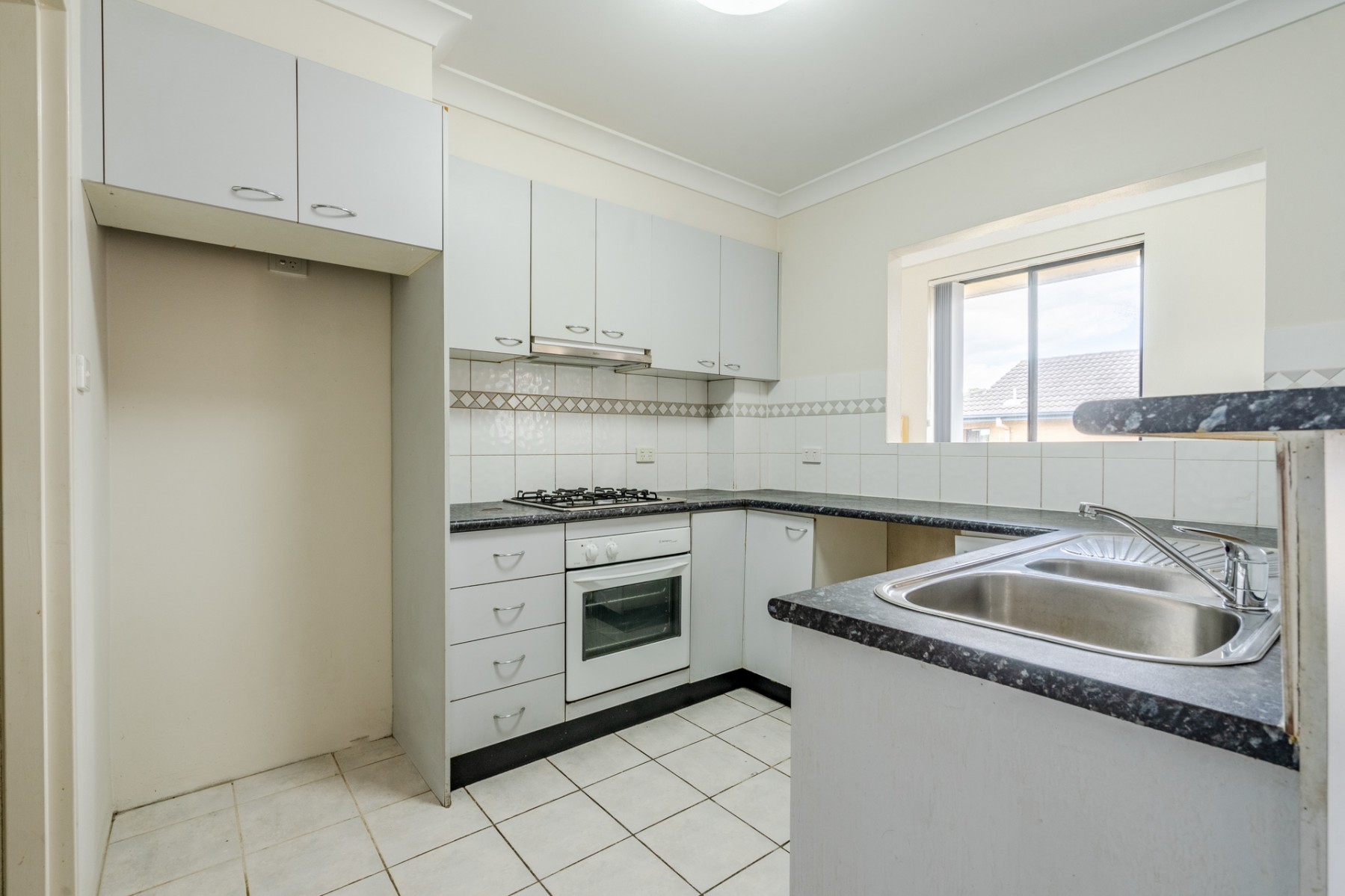 * Neat kitchen with gas cooking and ample storage
