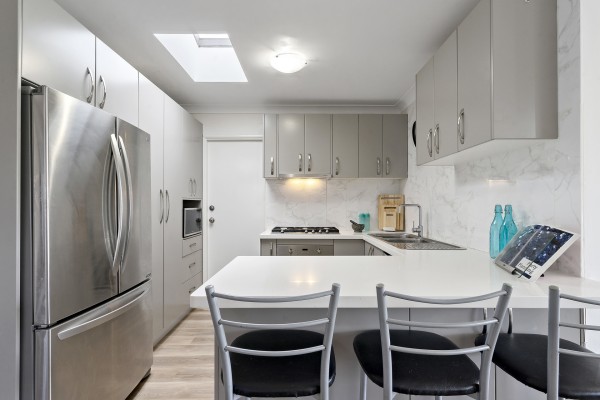 - Renovated kitchen with stone benches, stainless steel appliances including gas cooking & dishwasher