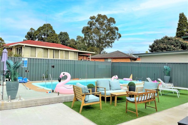 * Sparkling inground pool with beautiful glass fence panels