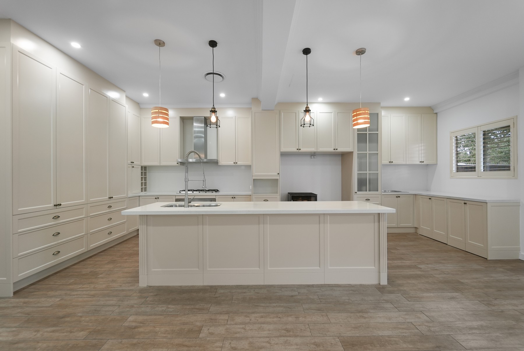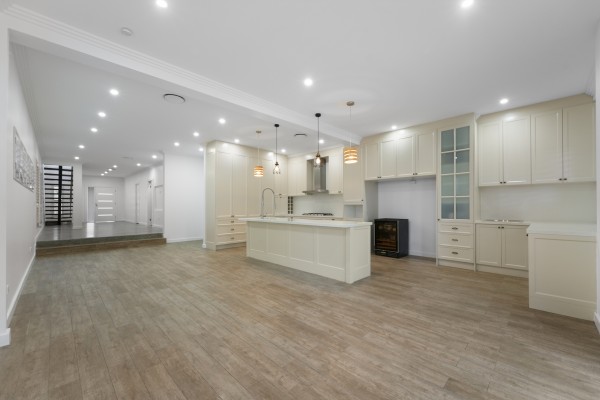 * Designer gas kitchen with thick stone bench tops