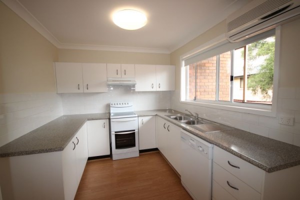 * Kitchen electric cooking with dishwasher and split system air conditioning