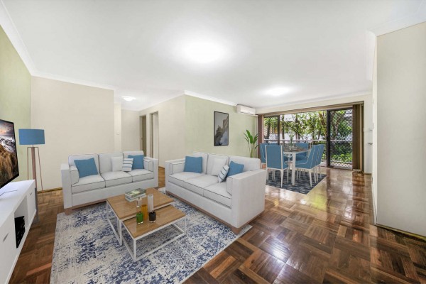 + Spacious combined lounge and dining room with parquetry timber floors