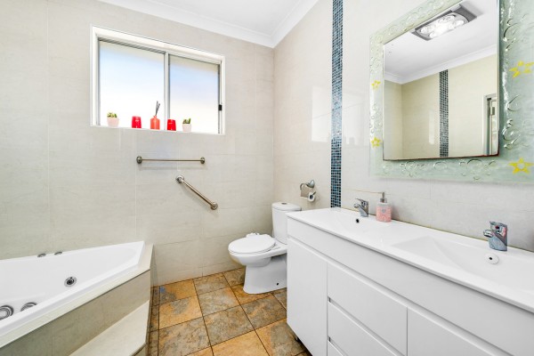 A modern and fully tiled bathroom, separate laundry with extra toilet and lots of storage space, a separate entertainer's kitchen, and a wide driveway with plenty of off street parking, and a lock up garage with internal space completes the home.