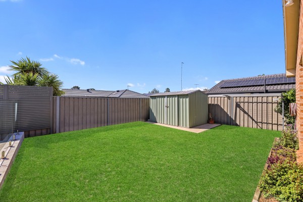 - Spacious grassed yard with garden shed and side gate access from both sides with garden beds