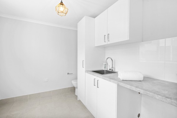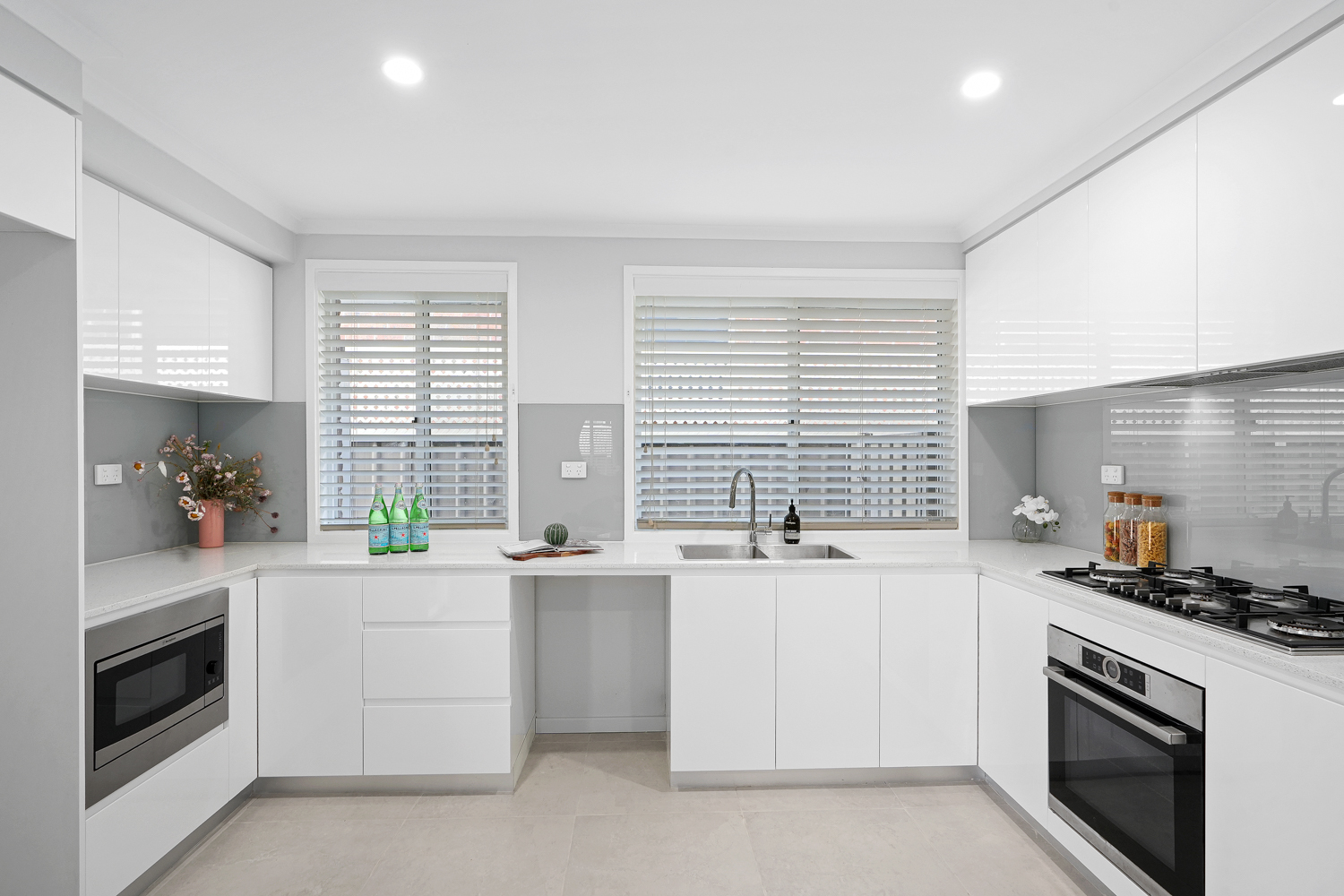 -Ultra modern kitchen with caesarstone bench tops, space for a dishwasher, gas cook top, plenty of cupboard space with soft closing draws plus built-in microwave and double sink.