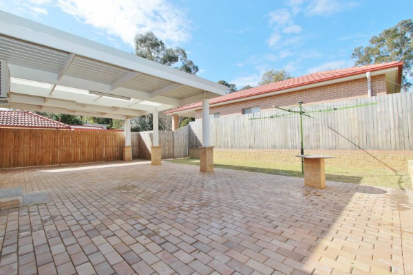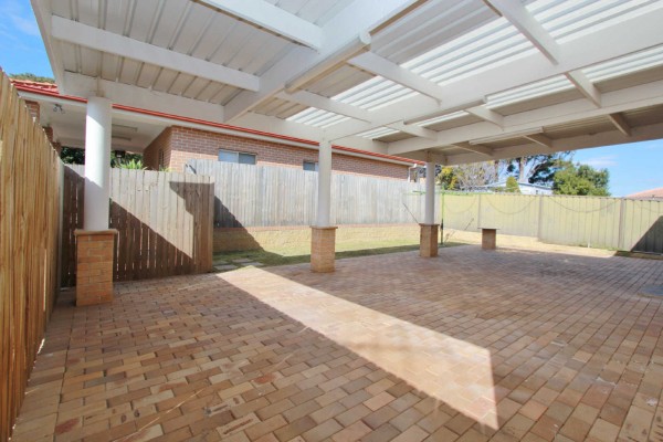 Fully Fenced Backyard with Paved & Covered Entertaining Area