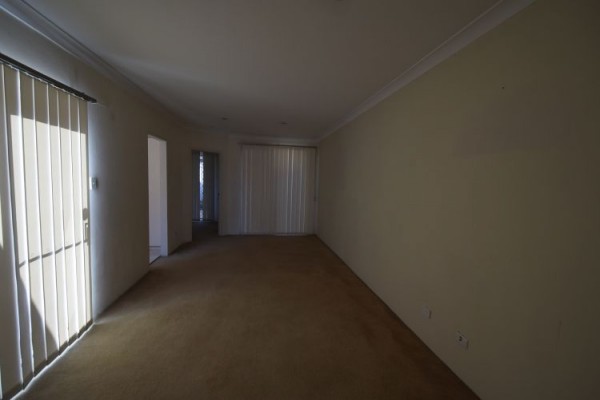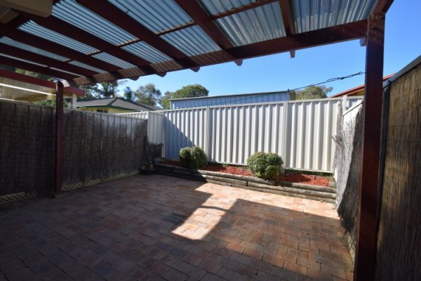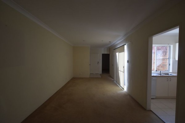 Combined lounge and dining through to the neat courtyard with easy to maintain garden along the fence