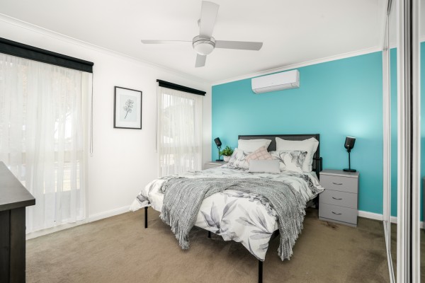 THE BEDROOMS: Three good sized bedrooms with two of the rooms offering built-in wardrobes. The main bedroom has a ceiling fan and a split system air conditioner.