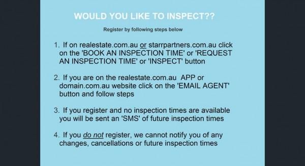 1.If on realestate.com.au or starrpartners.com.auclick on the `BOOK AN INSPECTION TIME or REQUEST AN INSPECTION TIME or INSPECT ' button