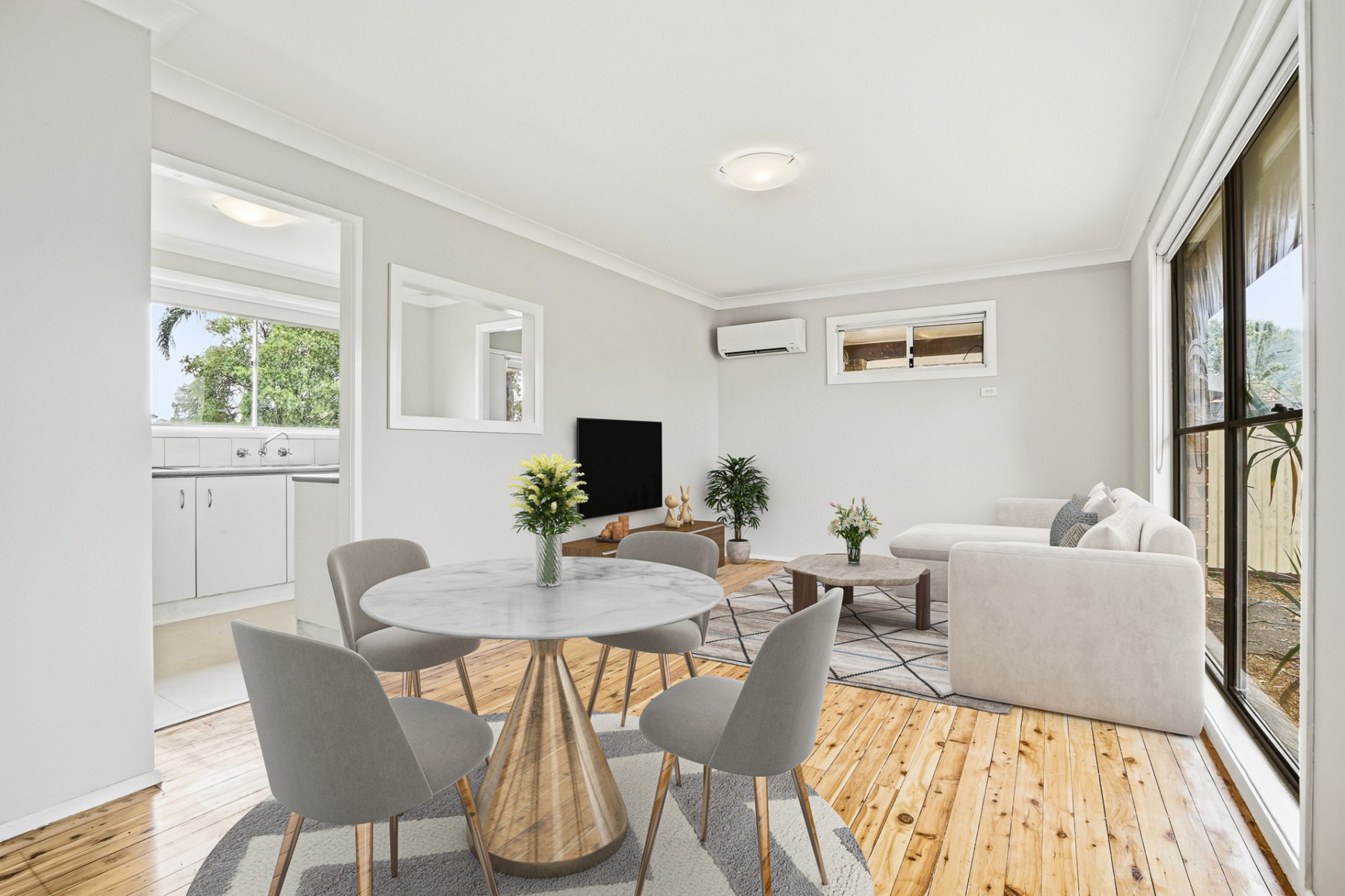 - Light-filled living and dining area featuring newly polished timber flooring, roller blinds throughout and Daikin split system air-conditioning for year-round comfort