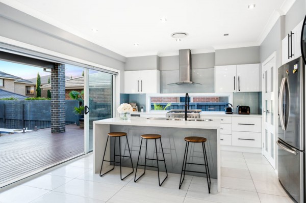 ~ Open plan gourmet kitchen with island ceaserstone bench top & walk-in pantry