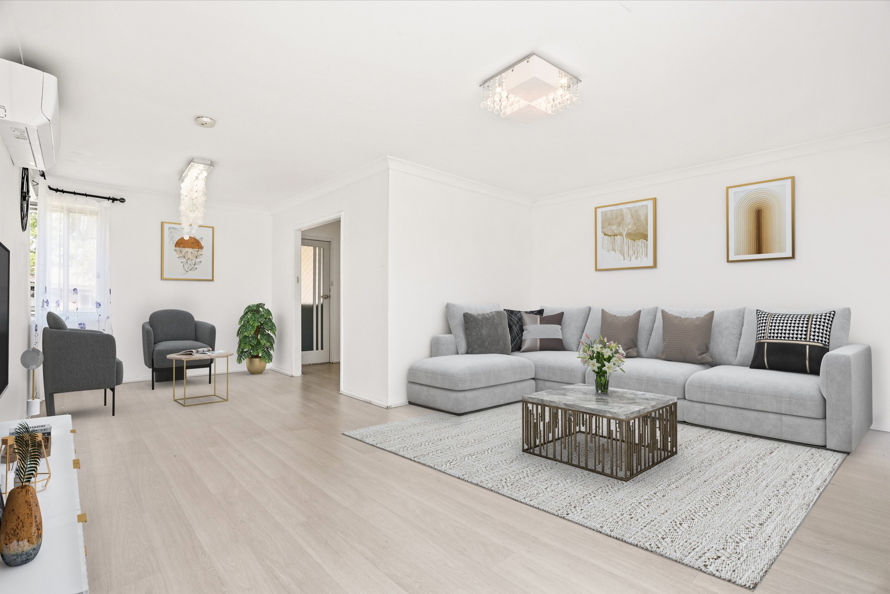 * Spacious living area with split system air