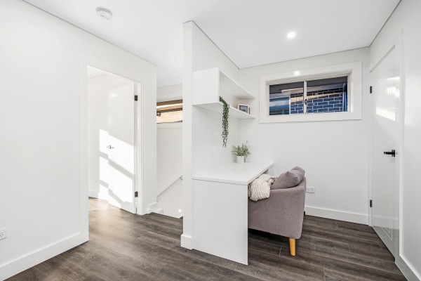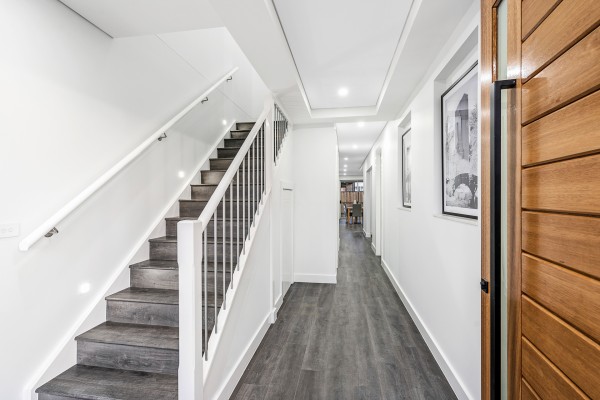 ~ Staircase leading to upstairs living area with designated Study nook.