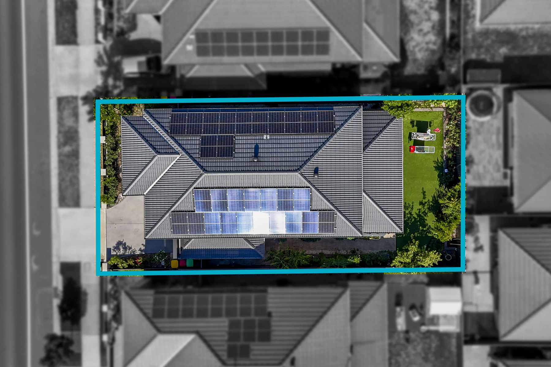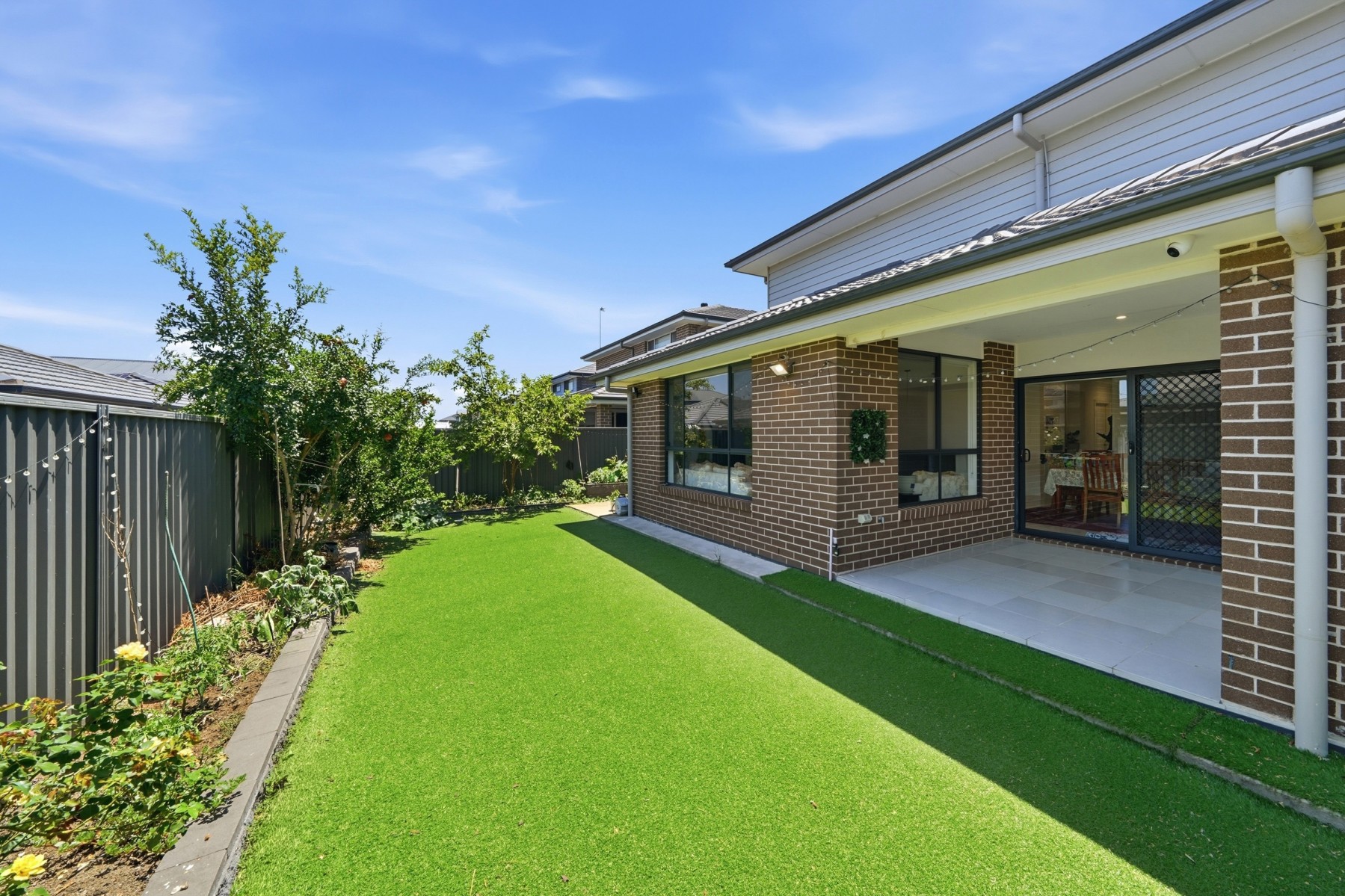 • Low-maintenance backyard featuring premium artificial turf