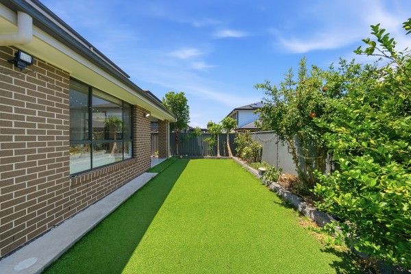 Step outside to an undercover alfresco entertaining area overlooking a beautifully landscaped, low-maintenance backyard with artificial turf, concrete paving around the home and neatly finished garden beds with block edging-perfect for relaxation, children's play or hosting guests.