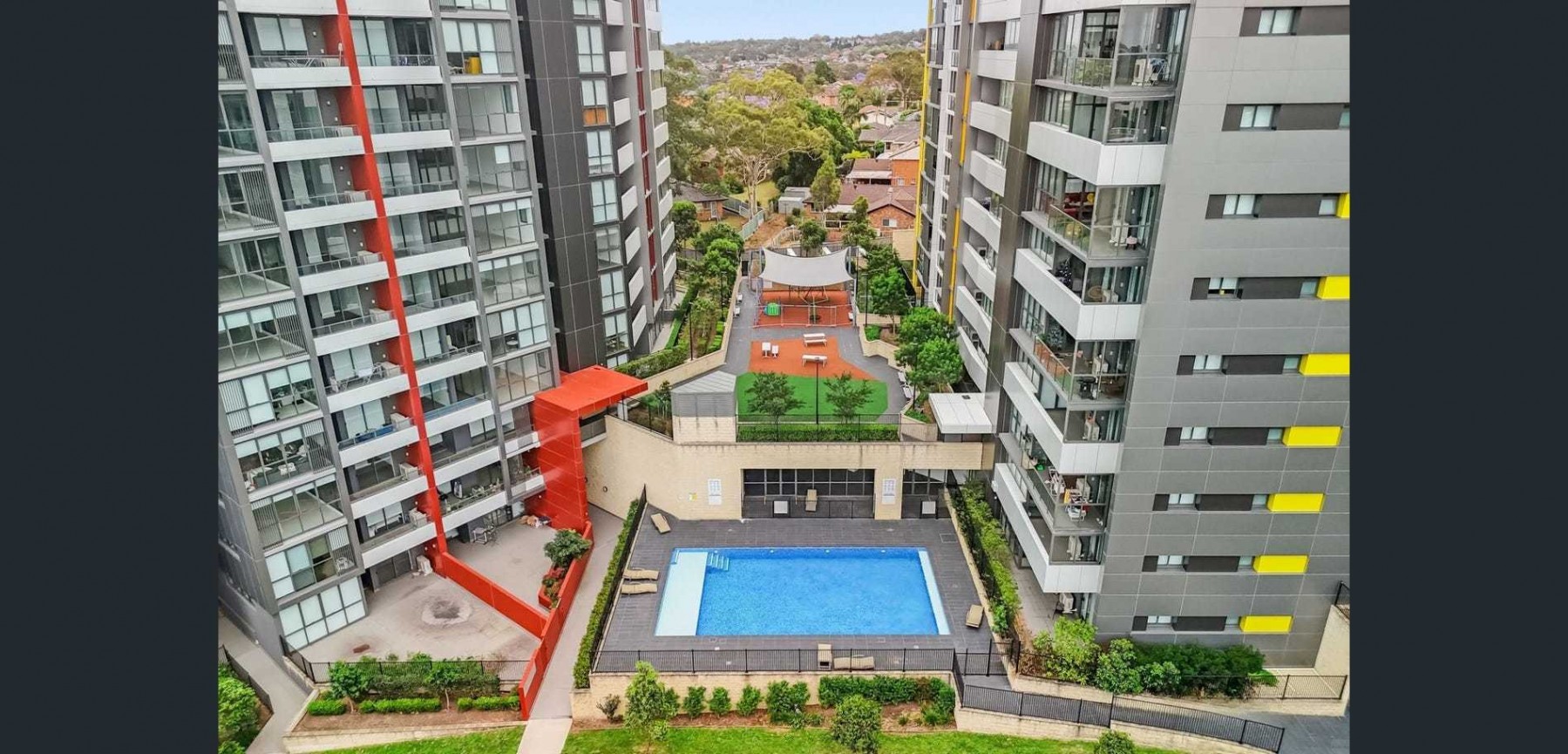 Exclusive resident amenities including a swimming pool, community room, and BBQ facilities - perfect for entertaining family and friends