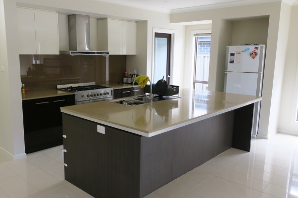 • Modern kitchen with gas cook top, dishwasher and microwave.