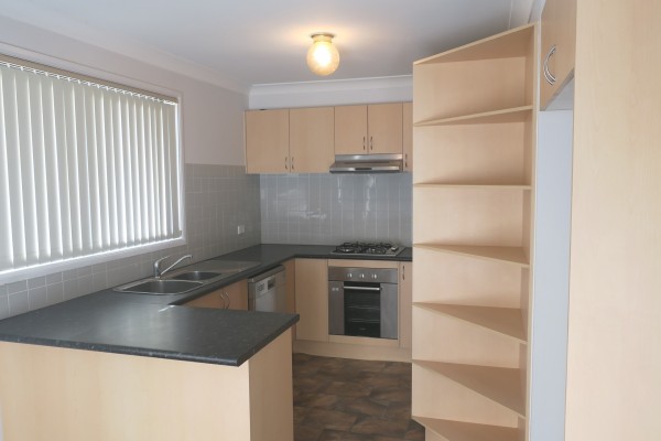 * Modern timber look kitchen with gas cooktop & stainless steel