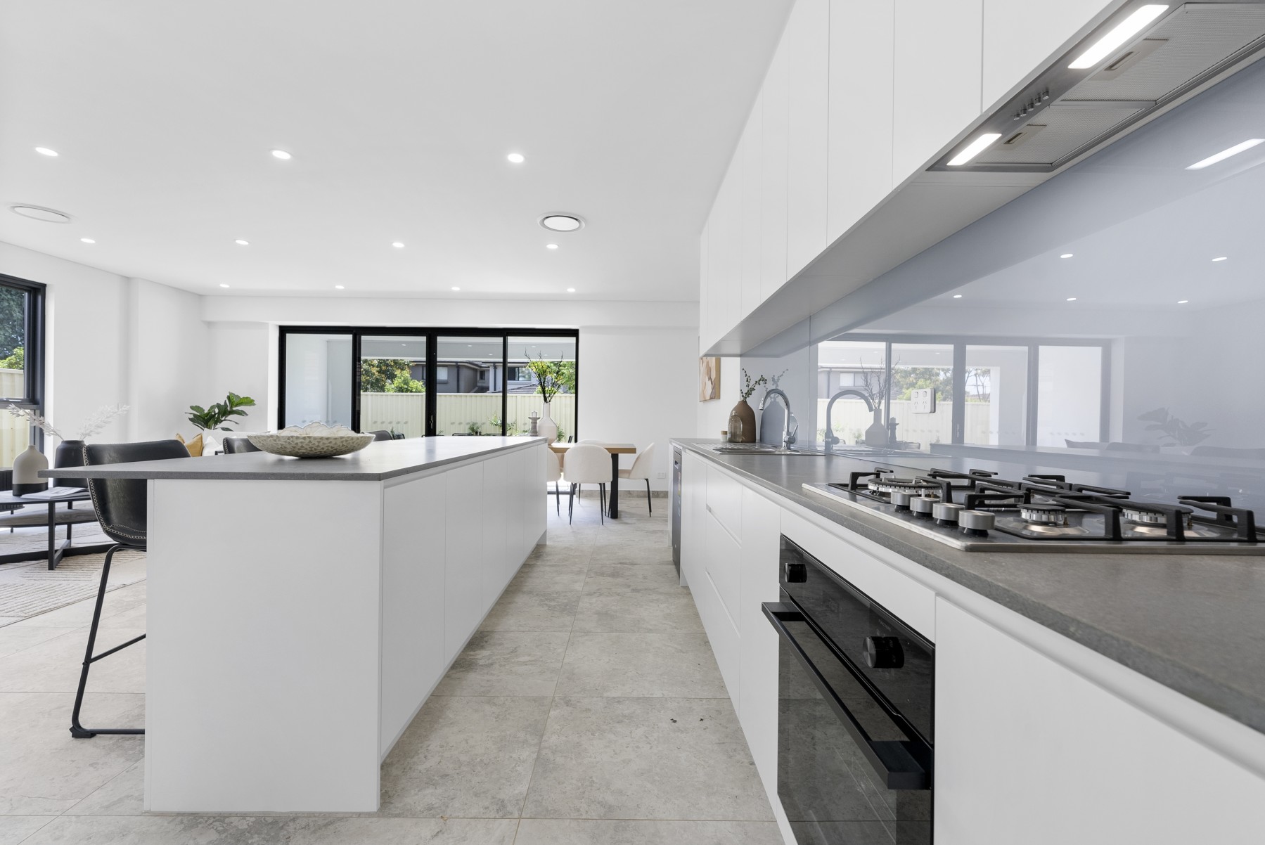 Made for entertaining, this exclusive residence enjoys an enormous living room adjoining a chic gas kitchen with stone bench tops, island breakfast bar and stainless-steel appliances. The kitchen includes a bonus hidden full sized gas kitchen, ideal for those who love to entertain. Outdoor lovers will adore the north-facing alfresco courtyard with its own kitchenette and manicured yard where you can soak up the sun. All upstairs bedrooms include built-in robes, with one bedroom also inclusive of a private balcony, with all bathrooms completed in chic full tile. There is also a chic laundry with stone bench tops conveniently accessing the outdoors with plenty of storage space including an under-stair storage room and a large walk-in linen press to complete the extensive package. The sought after Hilltop location is just steps to the bus stop and Alderson Park, while being just 550 metres to school, and 800 metres to the Hilltop Café district with easy access to the M4 motorway for Sydney and the airport.