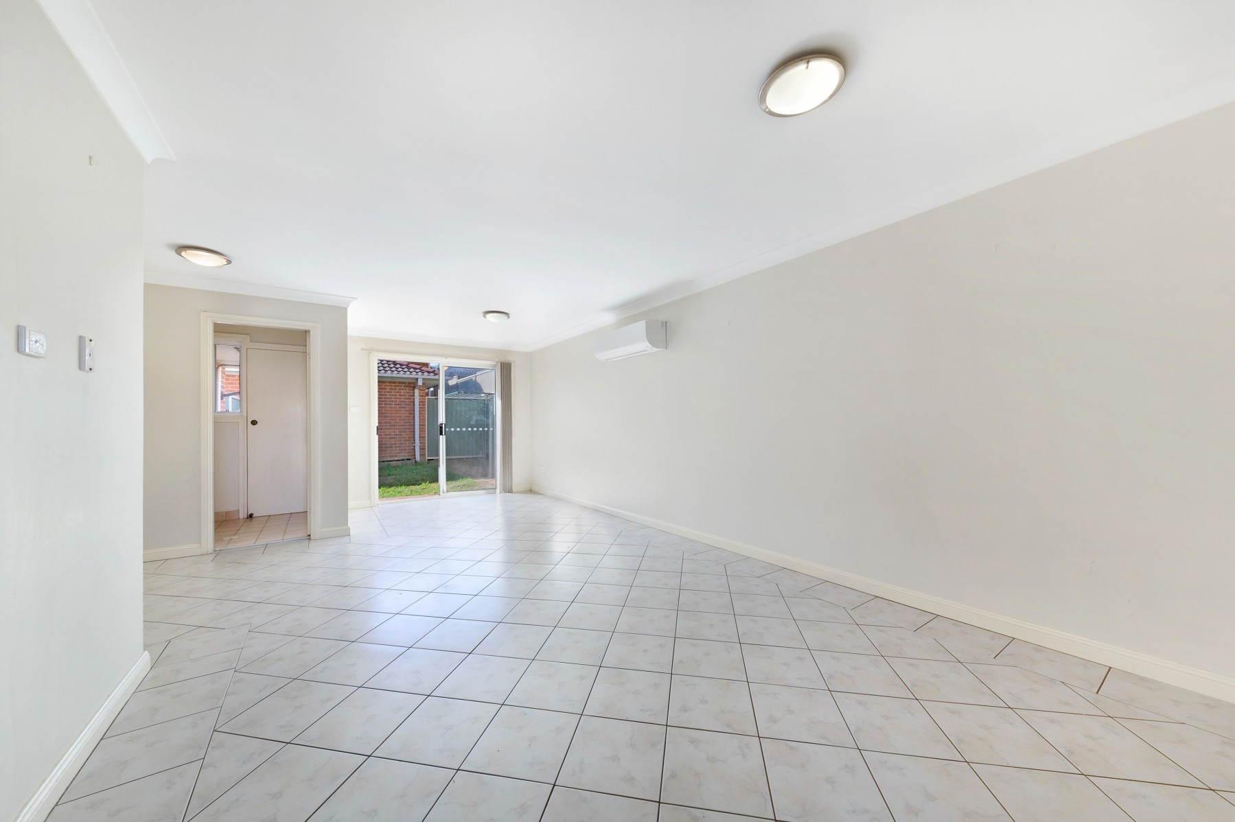 +Combined spacious tiled lounge and dining area with split system air conditioner,