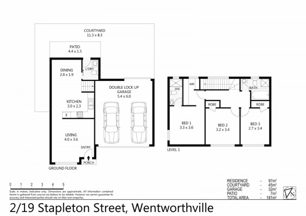 * Double lock up garage, aswell as easy to maintain courtyard.
