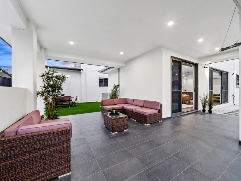 ~ Covered alfresco with access to manicured backyard & outdoor play area