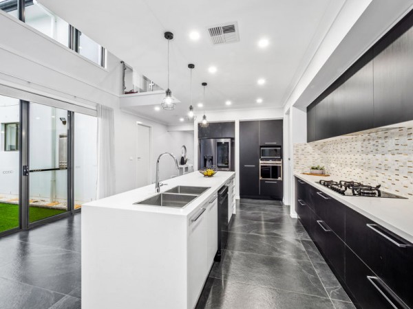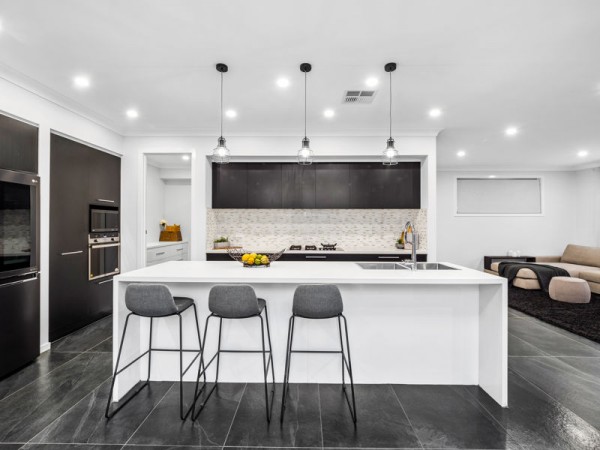 ~ Spacious open plan kitchen with caesarstone island bench, breakfast bar, walk-in pantry & cellar