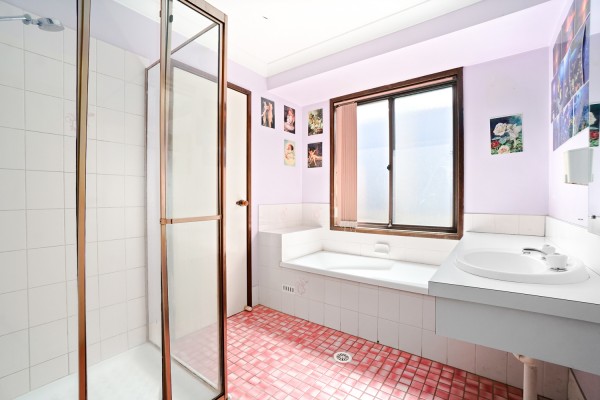 THE BATHROOM: Neat & tidy main bathroom with a separate bath and shower, plus a separate toilet. There is ensuite access to the main bathroom from the main bedroom.