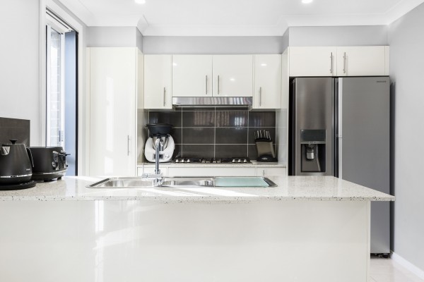 * Gourmet kitchen with stainless steel appliances, 900mm wide