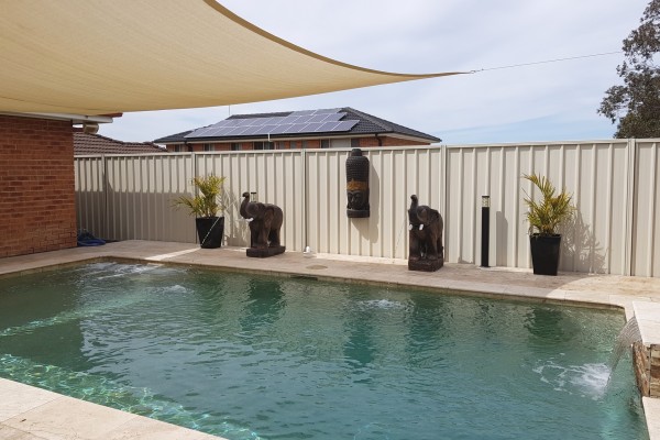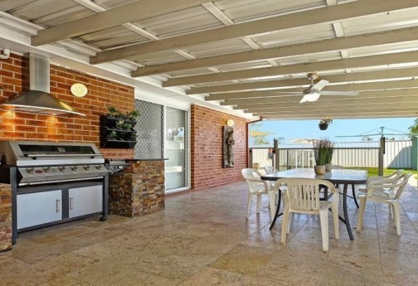 - Fully enclosed with glass panel fencing & beautiful travertine tiling to floor - Natural gas for the built-in BBQ with stone benchtops