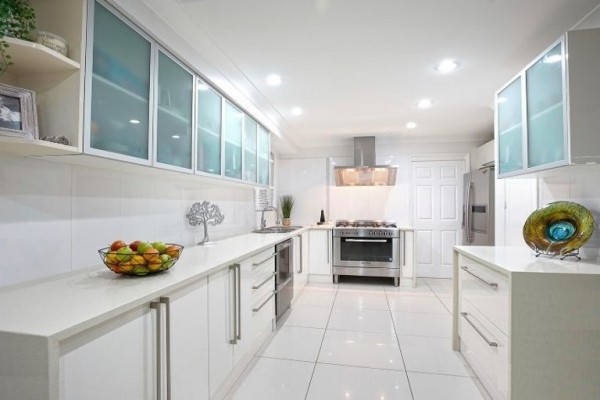- Your dream gourmet kitchen featuring stone benchtops with waterfall edges & stainless steel appliances