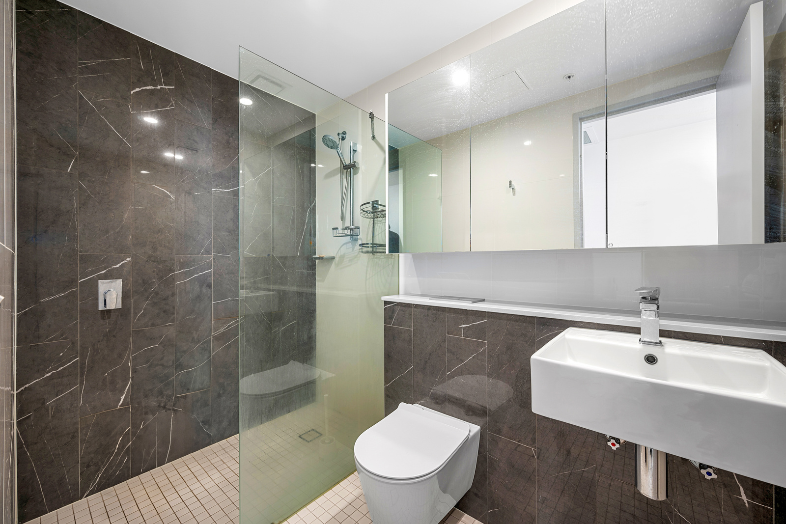 * Gas kitchen with stone benchtop, mirrored splashback
