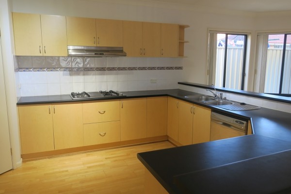 * Large open plan kitchen with gas cooktop & electric oven, dishwasher