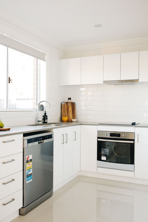 * Modern kitchen with stainless steel appliances including a dishwasher