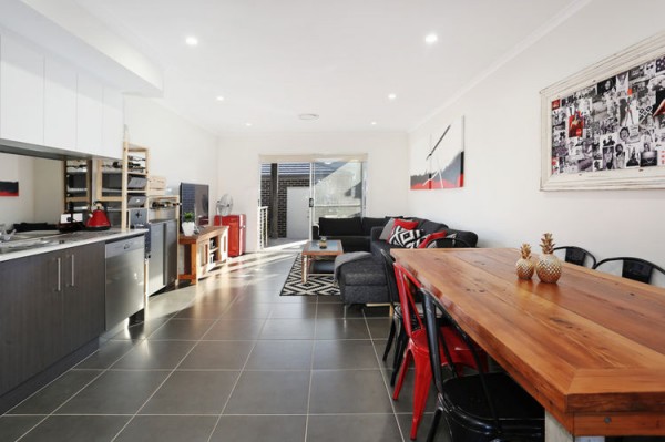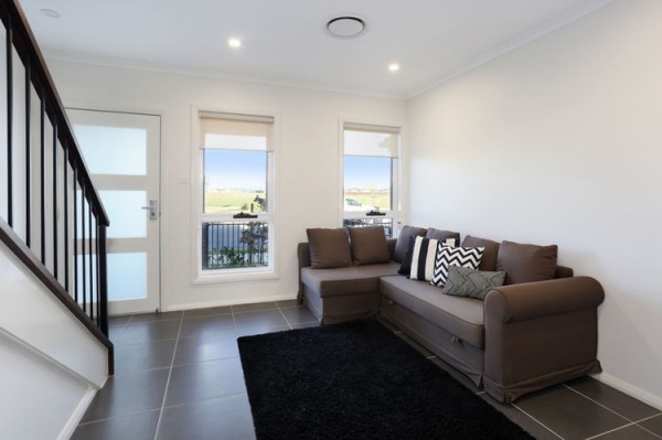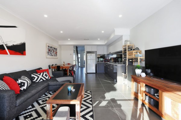 * Tiled open plan living area and carpet to bedrooms