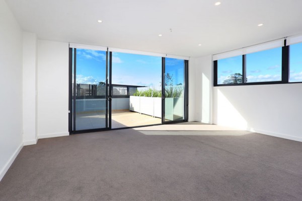 * Spacious living area with high ceilings and high windows