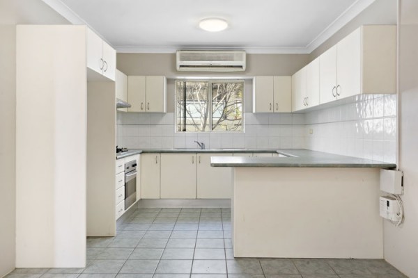 * Modern kitchen with gas cooking and plenty of cupboard and bench space