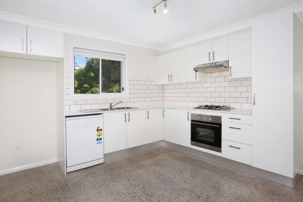 * Open plan kitchen and lounge with concrete polished flooring