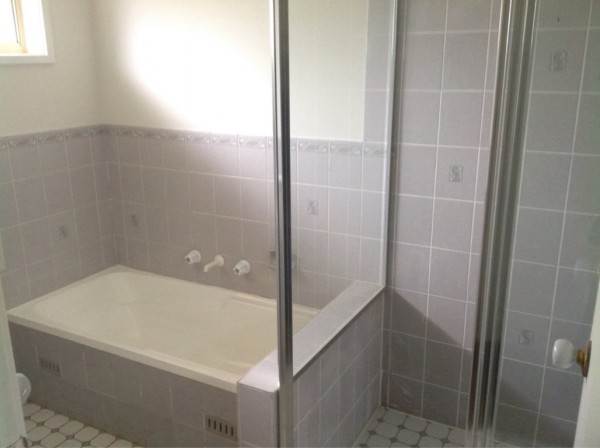 * Modern bathroom with separate bath, shower & toilet