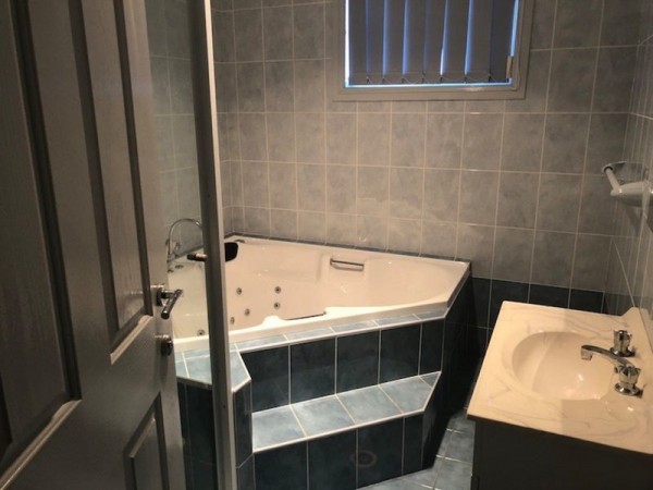 * Neat bathroom with corner bathtub