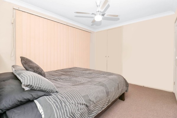 * Deluxe master bedroom with mirrored walk in robe, ceiling fan and