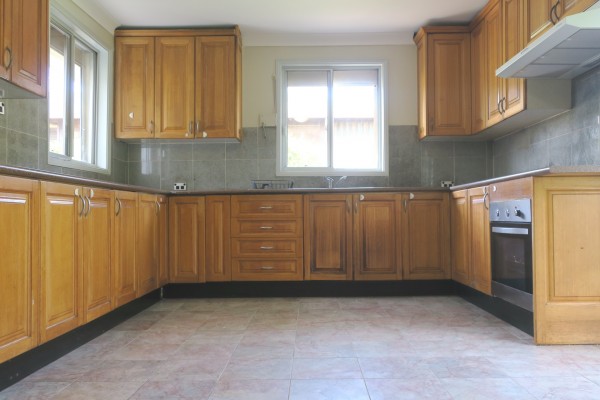 * Large tasmanian timber oak kitchen with stainless steel appliances with electric cooking & a dishwasher