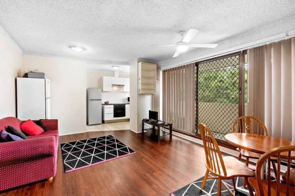 * Spacious open plan lounge & dining room with ceiling fan & vinyl plank