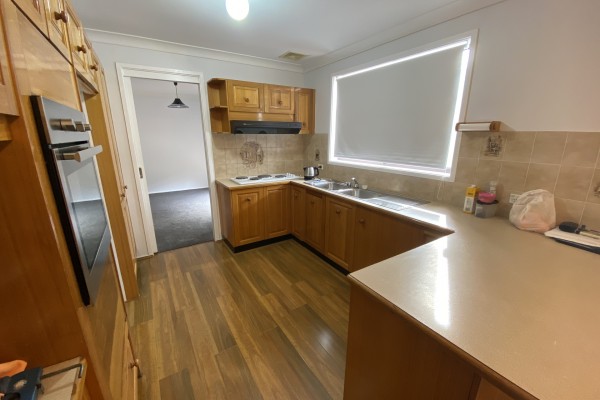 * Spacious kitchen with electric cooking, plenty of cupboard space and