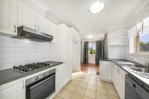 + Bright kitchen with laminate benches and gas cook-top, new fan-forced gas oven and dishwasher