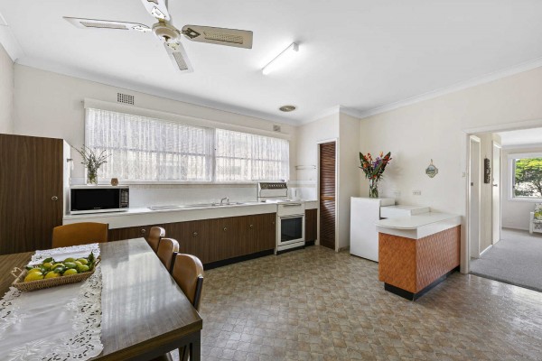 + Spacious eat-in kitchen with electric cook-top and laminate benches