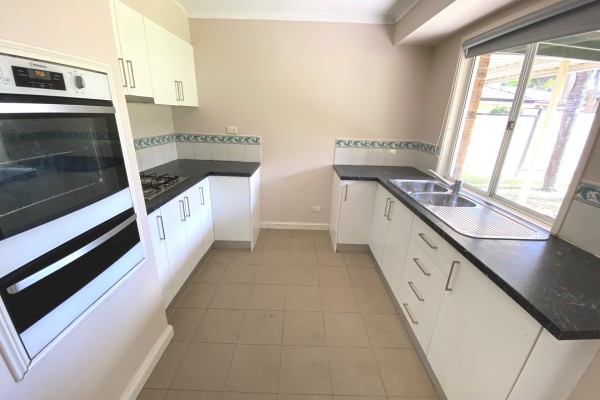 * Neat kitchen with gas cooking, stainless steel appliances & plenty