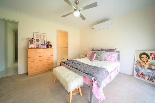 * Spacious lounge room on entry with carpet which offers a ceiling fan & reverse cycle split system air conditioning