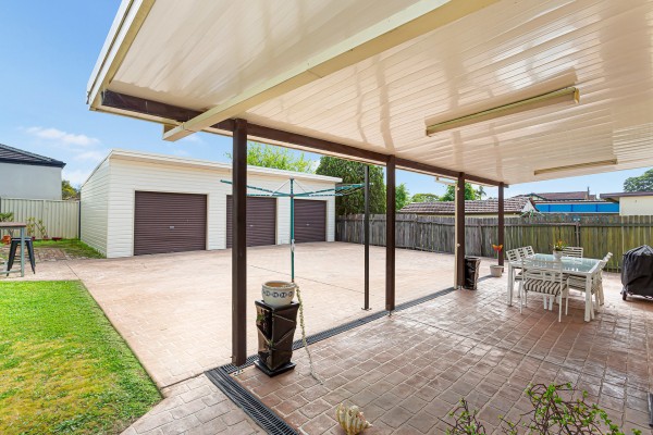 A wide driveway leads to a massive 3 car garage and low maintenance yard with alfresco entertaining area!